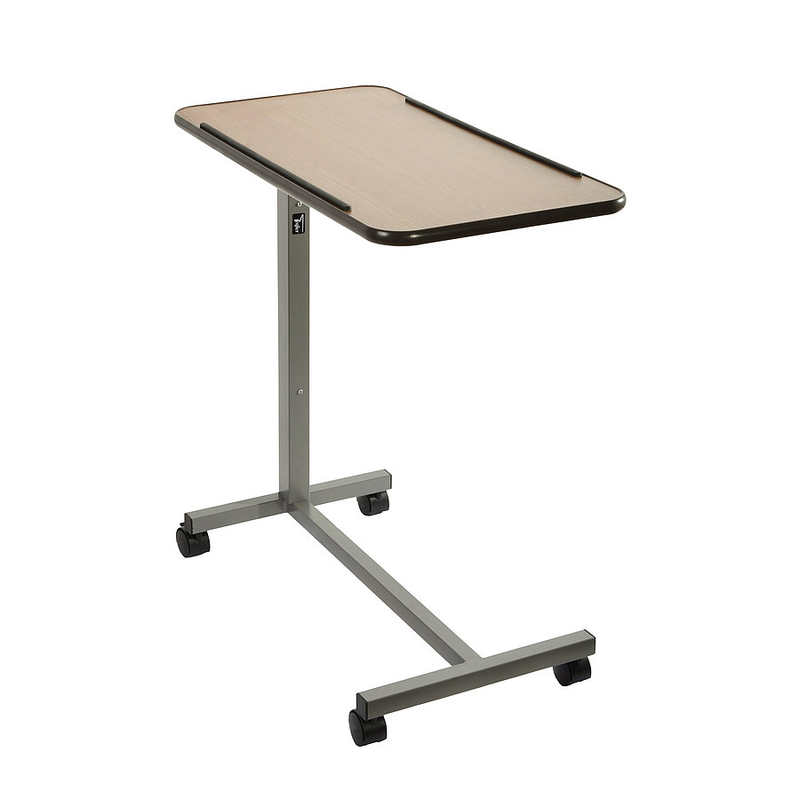 Betegágy asztal dönthető asztallappal, praktikus csúszásgátló peremekkel.