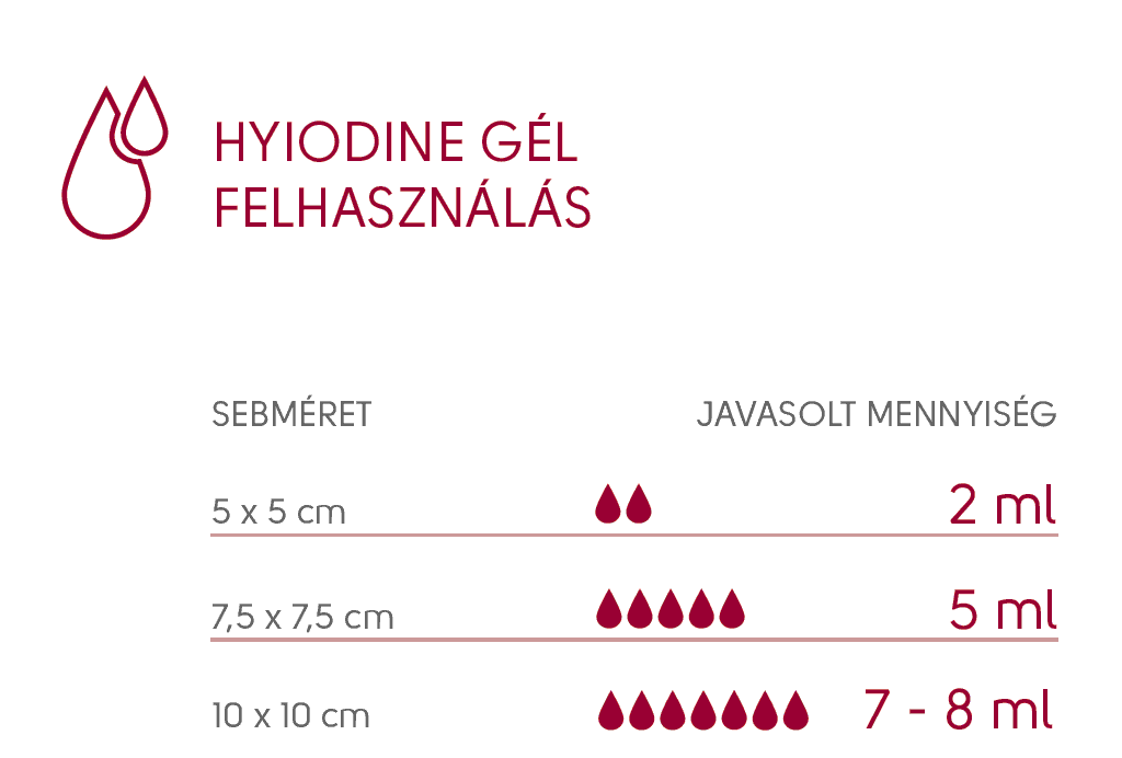 A Hyiodine viszkózus gél formája révén tökéletesen alkalmas a mély és nehezen elérhető sebek kezelésére. Teljeskörű hatékonysága miatt a Hyiodine-t a teljes gyógyulási folyamat során alkalmazható.