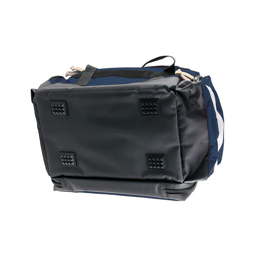 A tágas, kék színű „Lüttich” mentőtáska vízálló nejlonból készül, és két különböző méretben kapható.