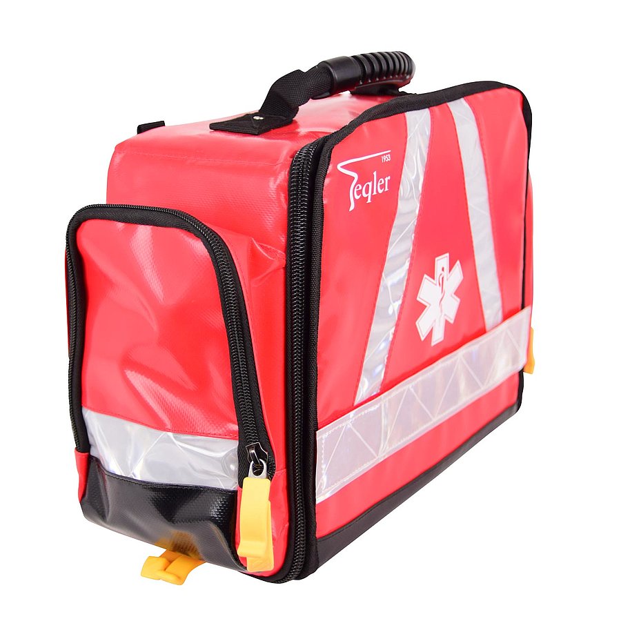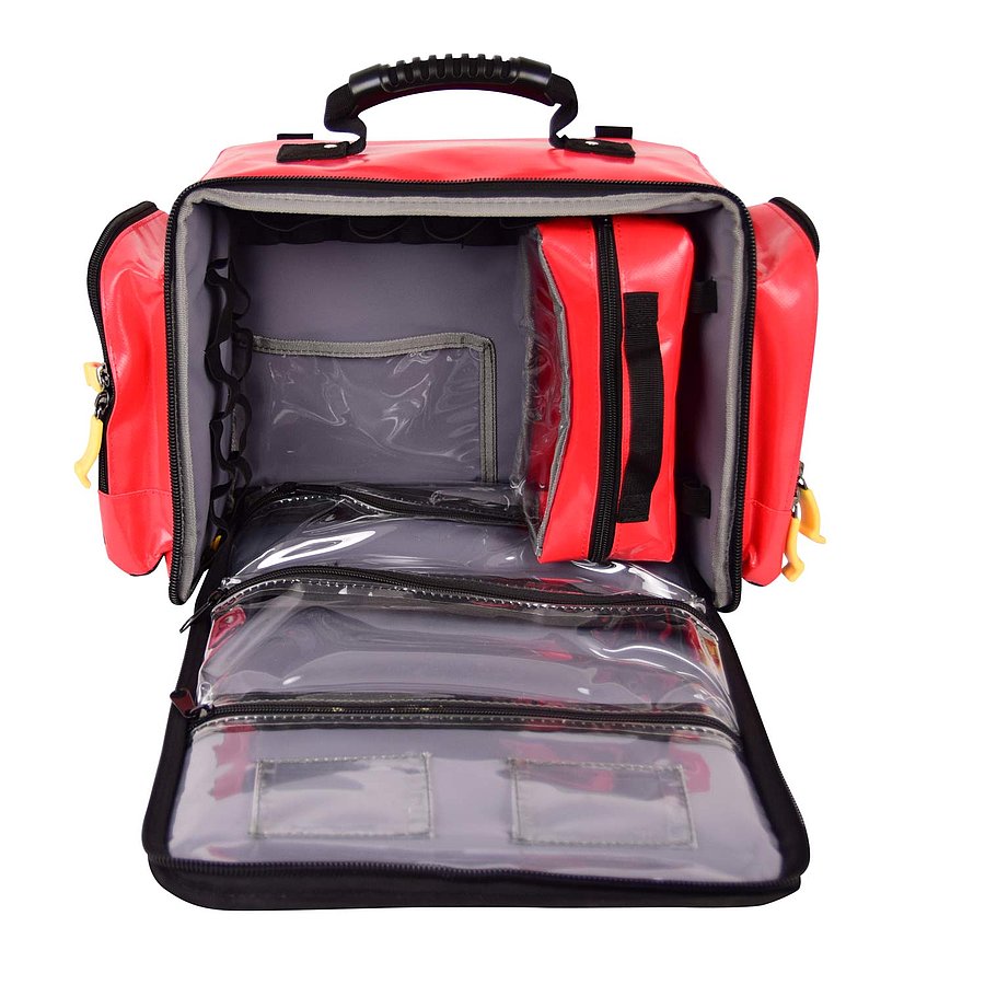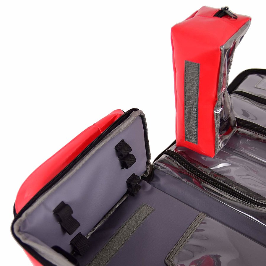 Sürgősségi táska sok praktikus rekesszel és kivehető modul táskával. A táska vízálló, mosható vászon anyagból készült, ezért ideális kültéri használatra, rossz idő esetén is. Az elülső és az oldalsó fényvisszaverő csíkok biztosítják a jó láthatóságot a forgalomban.