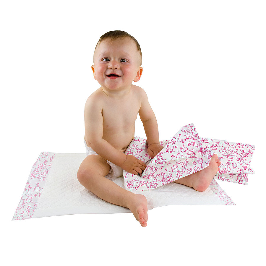 Pelenkázó alátét. Felszívja és megköti a vizeletet. Kényelmes elhelyezést biztosít a csecsemőnek a pelenkázás során. Különböző, gyermekbarát motívumokkal.