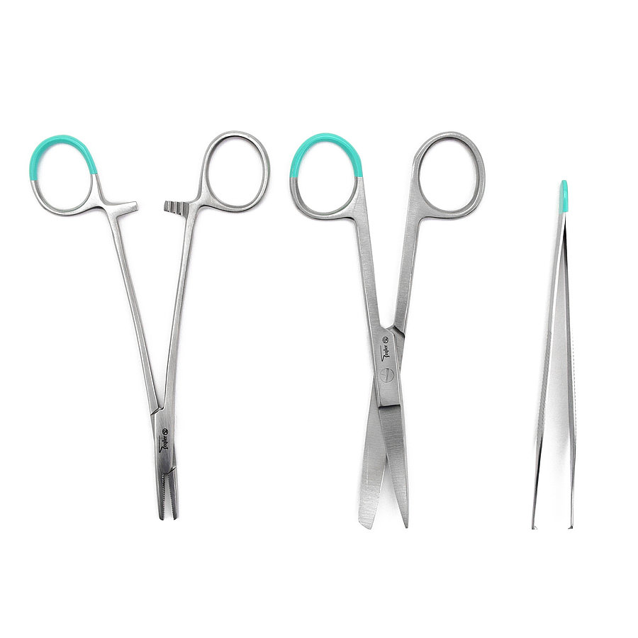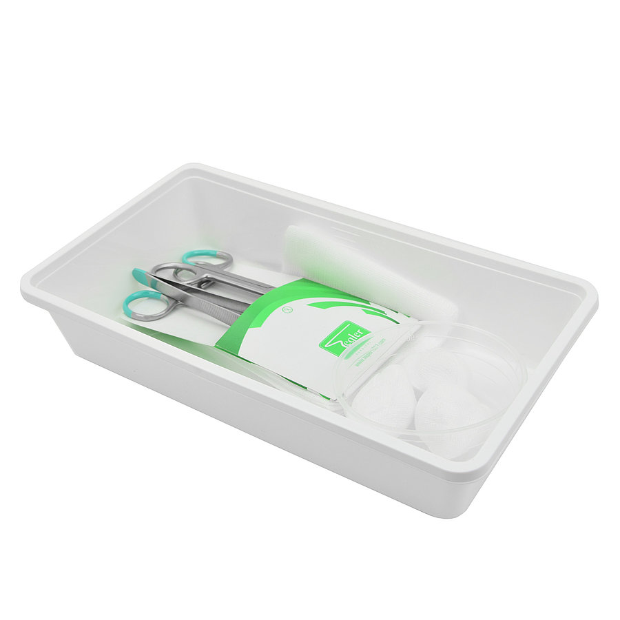 Steril csomagolású varrókészlet. A készlet erős, egyszerhasználatos kéziműszereket (színkóddal, címkékkel), kötszert, védőalátéteket, valamint 1 csészét és műanyag edényt tartalmaz a használt műszerek számára.
